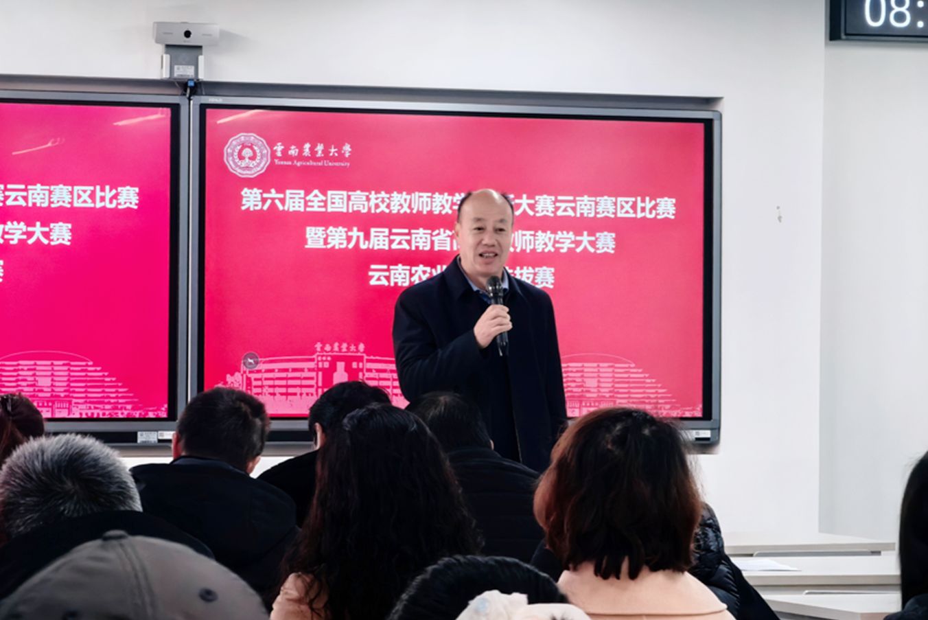赵正雄指出,教师教学创新大赛既是检验和展示教师教学改革成果的重要平台,也是深化课堂教学改革、提升人才培养质量的重要抓手。他鼓励参赛教师立足学校办学定位和学科特色,深入挖掘云南丰富的生物多样性资源、独特生态环境和深厚农耕文化,将真实问题和实践场景融入教学设计,推动教学内容与区域发展、产业需求和学生成长紧密结合。同时,要求大家要顺应教育数字化和人工智能赋能高等教育的发展趋势,积极探索线上线下融合教学、翻转课堂、项目式学习等教学新模式,不断提升课堂教学的吸引力和实效性。